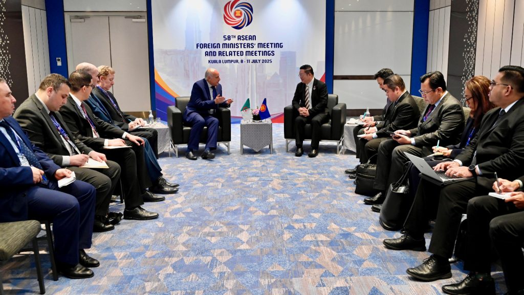 La rencontre a été consacrée à “l’examen des perspectives de renforcement du partenariat entre l’Algérie et l’ASEAN à la suite de l’adhésion de l’Algérie au Traité de cette organisation régionale, et ce, à la lumière des valeurs communes que partage l’Algérie avec l’ASEAN et des relations bilatérales privilégiées qu’elle entretient avec ses Etats membres”, a précisé le communiqué.